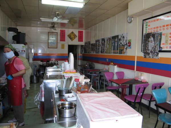入口右手邊的牆上貼著的是王建民出賽的報導.小王每次出賽的隔天,老闆都會去買蘋果日報回來貼在牆壁上,就是相中那全彩大版面的體育版.上個球季到最後都不知道要貼在哪邊,整面牆花花綠綠的,但是今年大概貼不滿了吧(嘆),還停留在那心酸的第八勝.